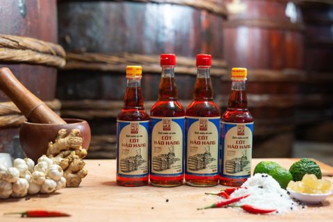 2/ Nước mắm cốt thượng hạng 100% nguyên chất (thời gian ủ chượp khoảng 18 tháng). Về cảm quan nước mắm có màu vàng cánh gián. VỊ mắm mặn dịu, đậm vị đạm đọng trong khoang miệng khi nếm thử, vị ngọt hậu lưu ở cuống họng.