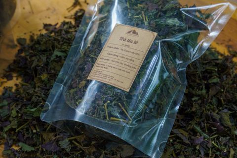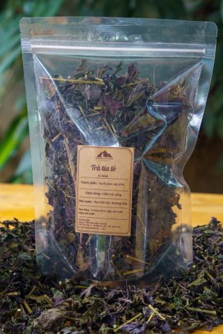 - Thành phần: 100% lá tía tô sấy khô